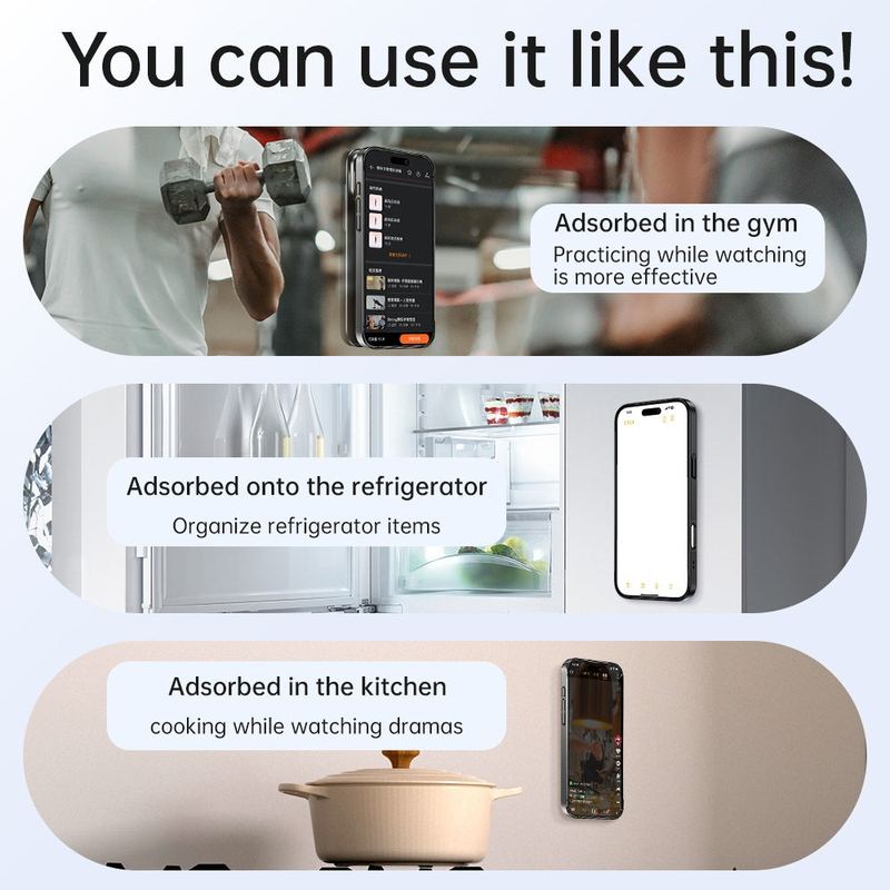 Our unique dual-function case features an invisible stand for propping up your phone on any flat surface, perfect for video calls or media viewing. Additionally, the integrated suction cup stand allows you to attach your iPhone to smooth surfaces like windows or mirrors, ideal for hands-free use.